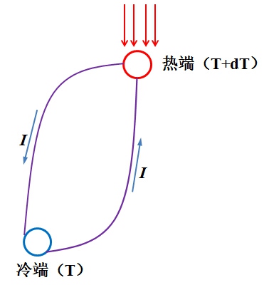 1. 溫差電效應:簡單地說,就是在由兩種不同的金屬導體或是半導體材料構成的結點處,可以產生接觸電動勢。將這兩種不同的材料連接成一對節點構成的閉合回路,并使其中一個結點接受輻射(熱輻射或光輻射),則該節點就會產生“溫度升高”,與另一個沒有接受輻射的結點之間出現溫度差,導致兩個結點的接觸電動勢不同,從而在閉合回路中產生電流。這種效應也叫作“塞貝克效應”。